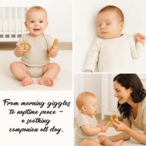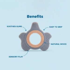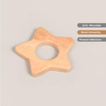 Its star-shaped structure with a central grip hole allows babies to hold, chew, and explore comfortably. The smooth wooden texture gently massages sore gums, offering natural relief while promoting fine motor skills, sensory development, and independent play. Eco-friendly and durable, this teether is a perfect choice for conscious parents seeking safe and sustainable baby products.